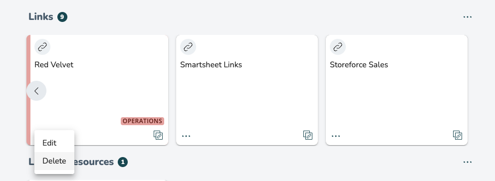 - Navigieren Sie zur Link-Ressource am unteren Rand Ihrer Startseite und klicken Sie auf das Menü mit den drei Punkten > Bearbeiten.