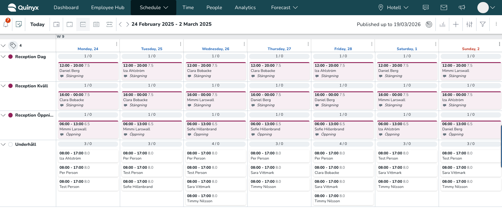 "Ist die Teamzusammensetzung für das Wochenende richtig?" | Erweitern Sie die Gruppe, um die spezifischen Namen zu sehen, die diesen Schichten zugewiesen sind. |