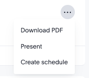 - Three-dot menu actions (PDF, Present, Create schedule)