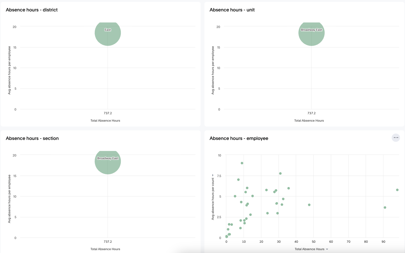 These metrics help you quickly assess the scale and distribution of absence events across your workforce.