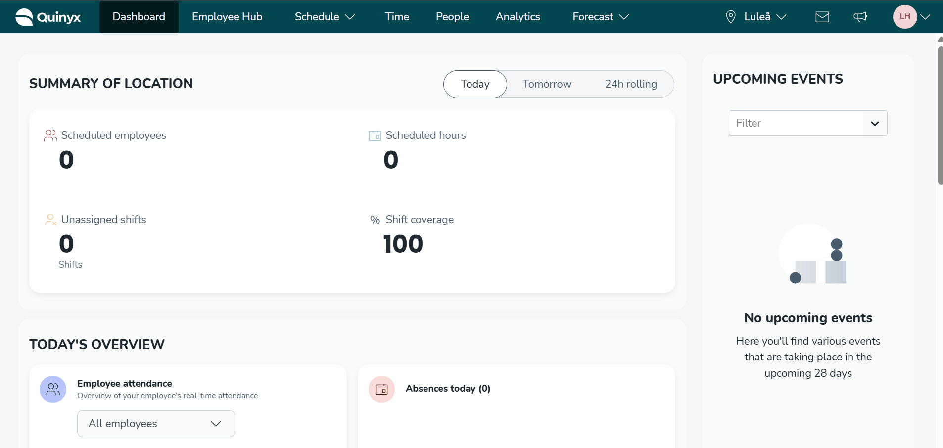 Business view offers an alternative way to visualize your schedule. Unlike the standard Employee view (which lists people), Business view groups your schedule by Shift type or Section.