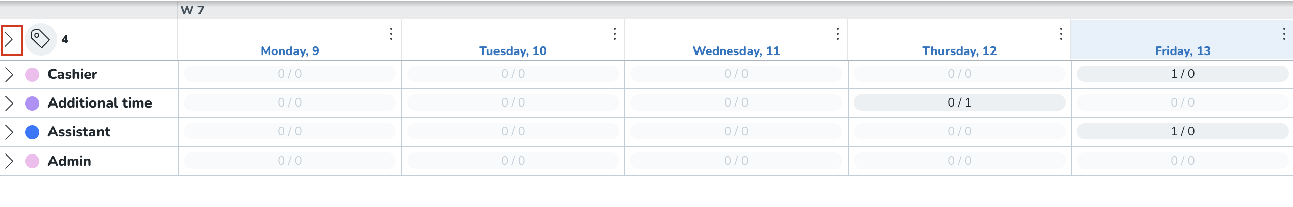 Previously, you had to collapse each group individually, which required multiple clicks to get an overview of assigned and unassigned shift counts.