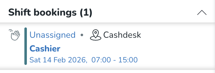 Shift bookings now display the section assigned to each shift directly in the list. This makes it easier to identify which section a shift belongs to at a glance. Shifts without an assigned section will continue to display as before.