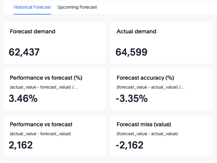 These KPIs allow rapid identification of under- or over-forecasting trends.