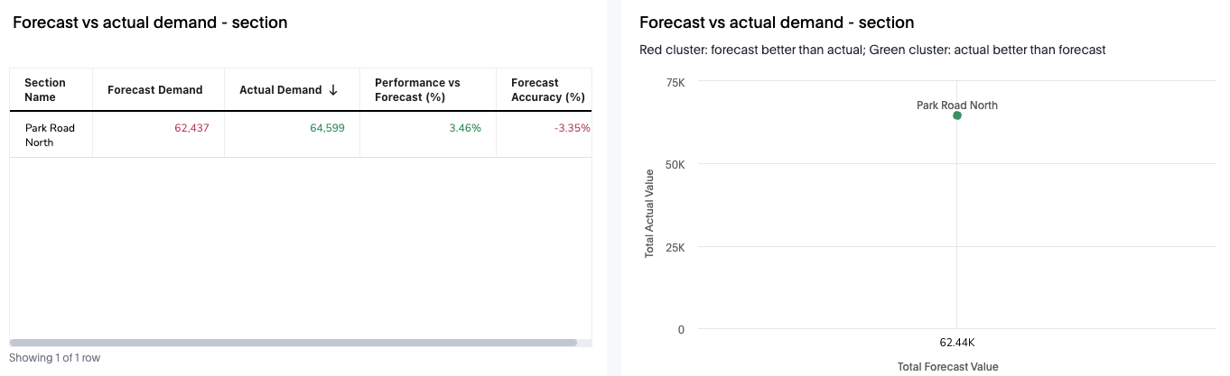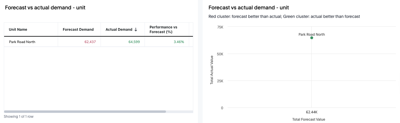 Negative = forecast underestimated actuals - Performance vs Forecast (value)