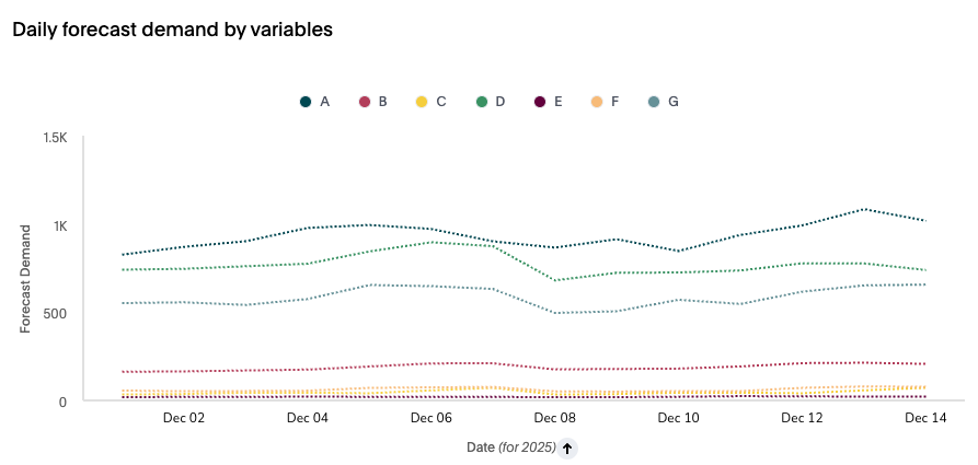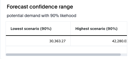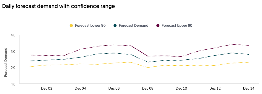 - Upcoming forecast – Review demand predictions with confidence ranges