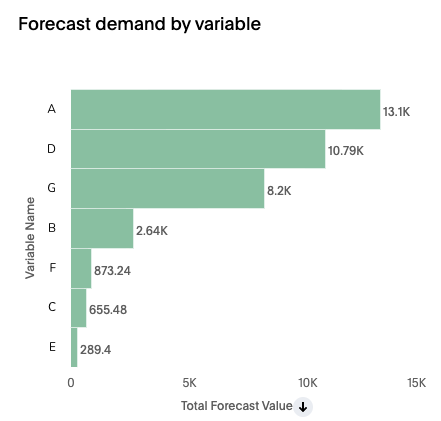 A horizontal bar chart ranking variables by forecasted contribution. This helps identify demand drivers for the selected period.