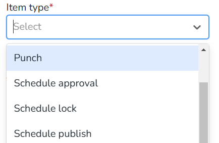 - Item dates apply to punches, so these fields will display if you select Punch in the Item type field.