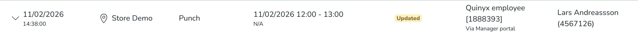 - Quinyx System: This option will search for all the updates made by Quinyx as a system.