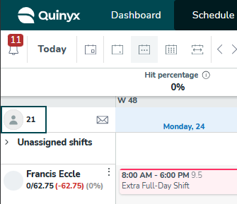 In both of the above cases, the metrics beside the employee avatar also display a percentage sign indicating the percent of nominal hours that are currently scheduled. Occasionally, the percentage doesn't fully appear.