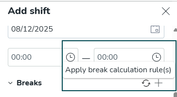 - Click the circular icon with two arrows to apply break calculation rules to a shift.
