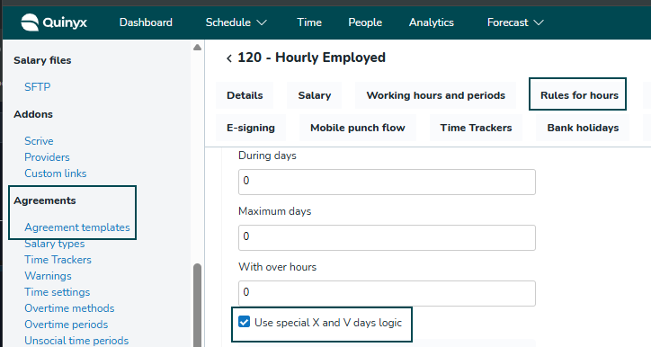 - Ga naar de sectie Regels voor uren.
