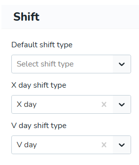 - Selecteer in de overeenkomstige velden voor X- en V-dagen de diensttypen die u in de vorige stap heeft aangemaakt.