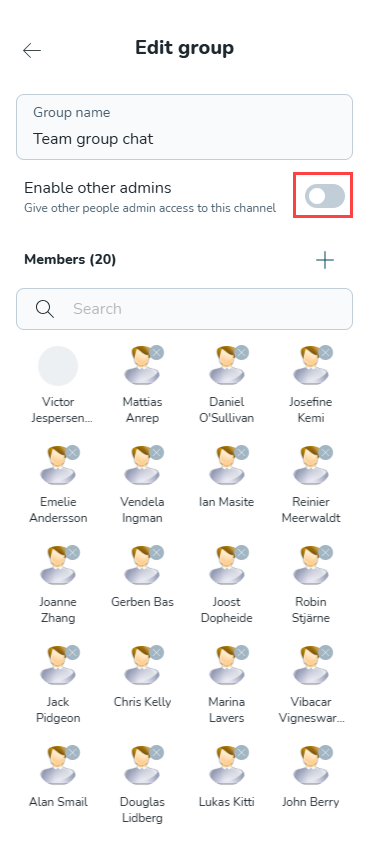 Dessa användare kan nu administrera gruppchatten som administratörer.