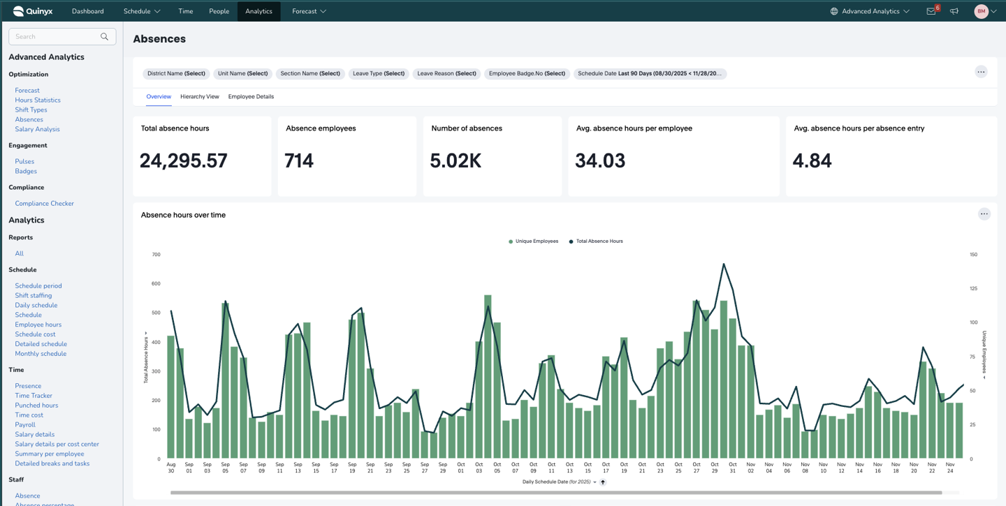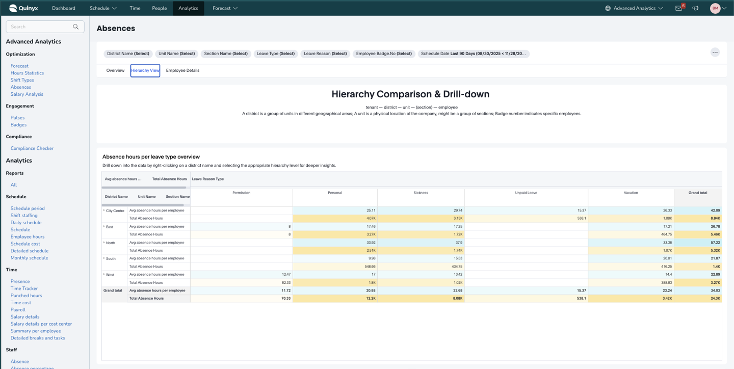 Samtidigt har vi lagt till nya drill-downs med djupare granularitet så att du nu kan göra analyser på hela din organisation - från Distrikt till Enhet, och Avdelningar till Anställda - samt en förbättrad "flik"-navigering, förbättrade aviseringar och bättre stöd för schemalagda rapporter.