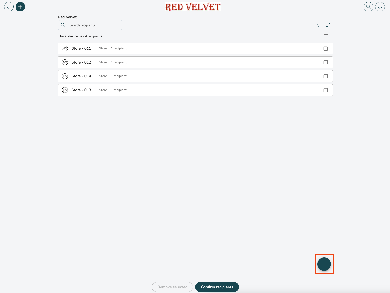 Du kan lägga till fler mottagare i en befintlig målgrupp genom att välja plusikonen längst ner till höger.