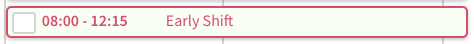 En röd ram kommer också att visas runt ett skift i fallet med helgdagsregeln Skift utan matchande stämpling: